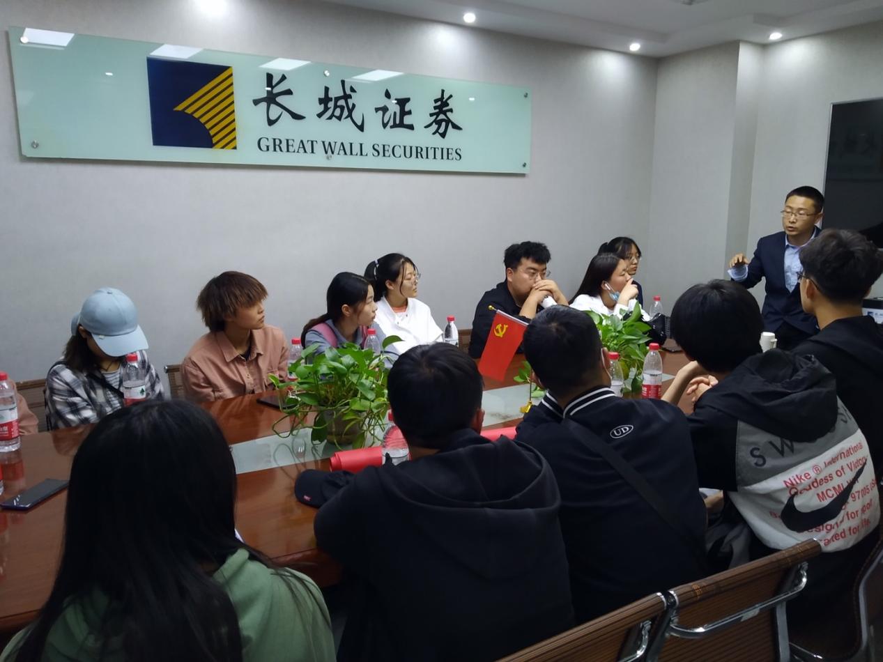 一行人参观了长城证券兰州金昌南路证券营业部的办公区域,了解了证券公司的相关职业操作运行以及业务经营情况,感受了大企业浓厚的企业文化。同时,工作人员忙碌的身影、行业人严谨的工作态度都为参观学生树立了正面的榜样。长城证券的公司领导表示,今后会为财鑫兰州财经大学FRM的优秀学员提供到长城证券实习和就业的机会,帮助同学们更好的提升职业技能。