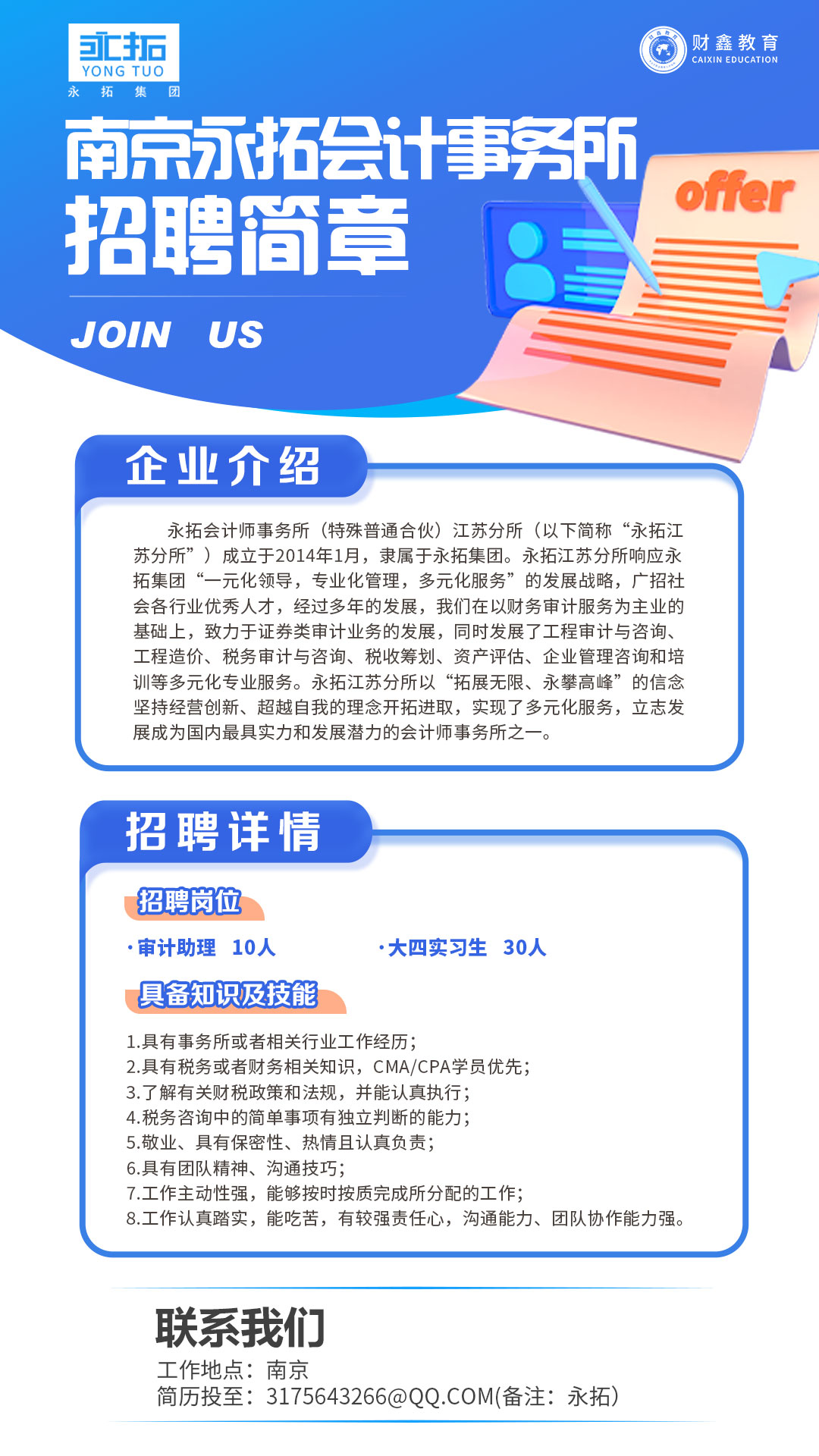 财鑫招聘 | 南京永拓会计事务所招聘简章