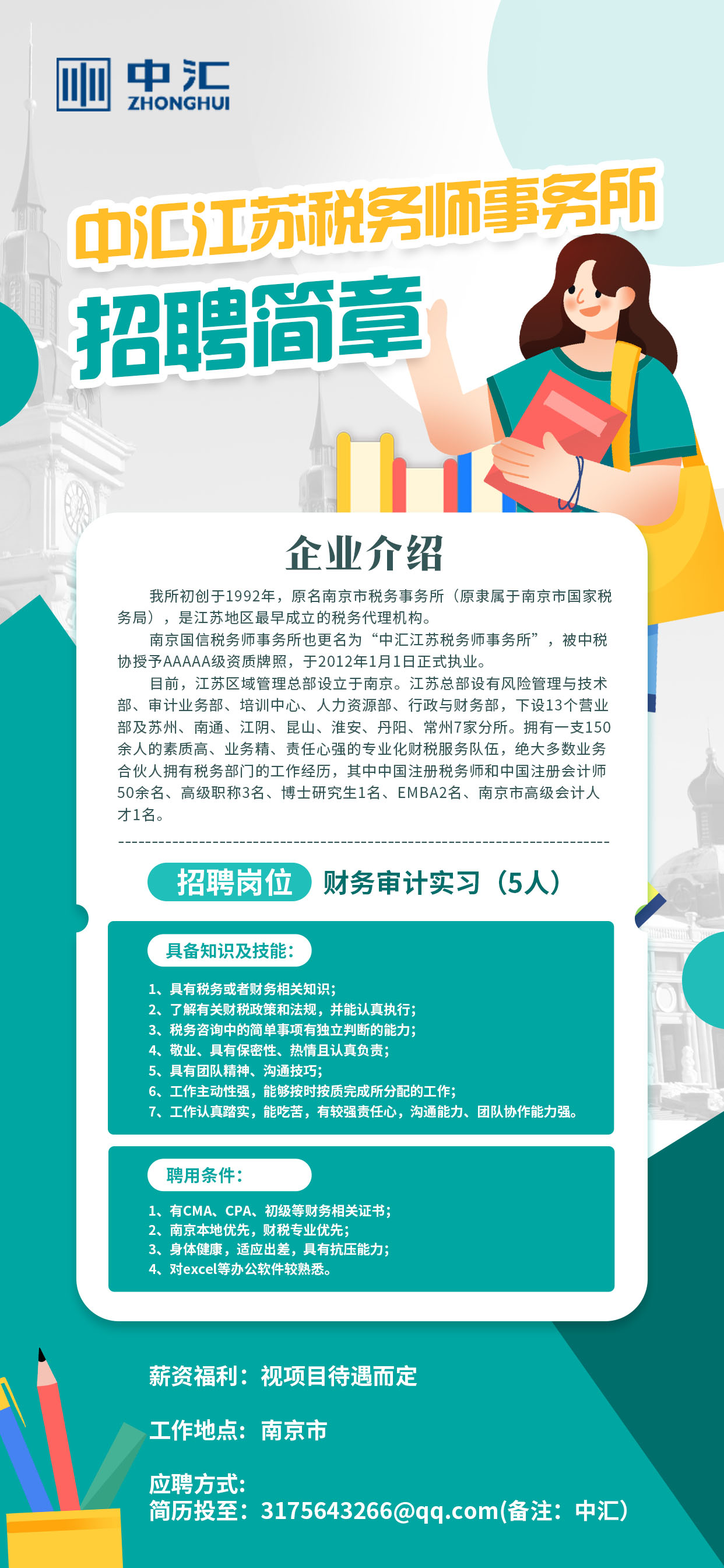 > 文章 > 财鑫招聘 | 中汇江苏税务师事务所招聘简章