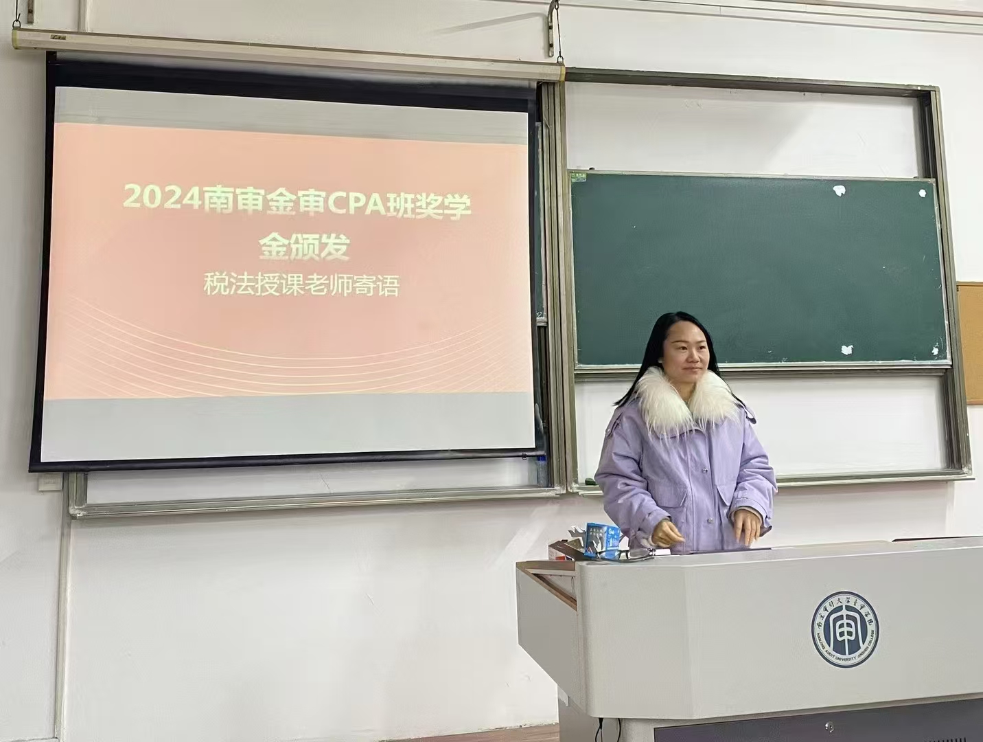 2025年2月23日,“2024南审金审CPA班奖学金”颁奖典礼在南京审计大学金审学院校内教A108教室隆重举行,本次典礼对金审学院24级校内CPA精英班秋季学期综合成绩前5名的学员进行表彰,颁发奖金及“优秀学员证书”。