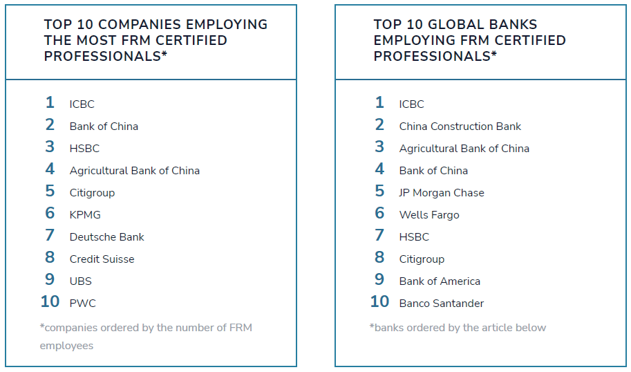目前,中国有超过3万名FRM持证人员,他们就职于全国各大主要金融机构。