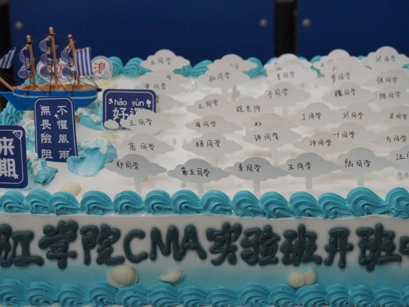 稍后,实验班开班老师和学员们一起吃蛋糕、游戏互动、合影留念,开班典礼圆满结束。