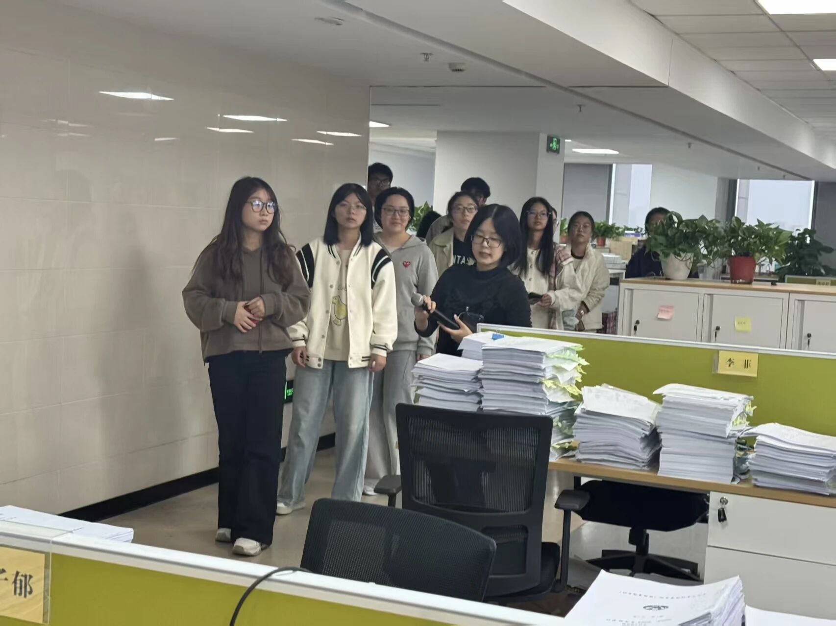 中兴华会计师事务所江苏分所的人事经理刘老师热情接待了参访师生,并代表公司对CPA精英班师生一行的到来表示热烈欢迎。一行人参观了江苏分所的办公区域,了解了企业的创建、成长发展史以及业务经营情况,感受了大企业浓厚的企业文化。同时,事务所工作人员忙碌的身影、行业人严谨的工作态度都为参观学生树立了正面的榜样。