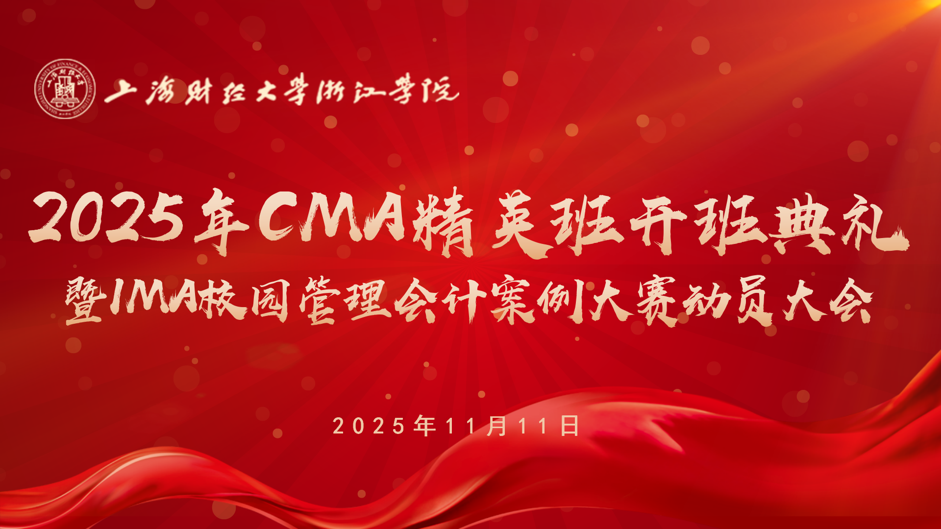 2025年11月11日晚,财鑫教育上海财经大学浙江学院2025年CMA精英班开班典礼暨IMA校园管理会计案例大赛动员大会在上海财经大学浙江学院图书馆报告厅成功举办。出席此次开班典礼的有上海财经大学浙江学院党委委员、副院长曾惠成、会计系副主任王霞、会计系党总支副书记、副主任许海亚、会计系相关负责人张洁、会计系财务管理系主任徐锐、IMA管理会计师协会学术关系经理周祥、财鑫教育董事长张福德、财鑫教育校企合作总监徐敏博等。