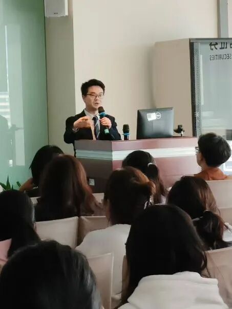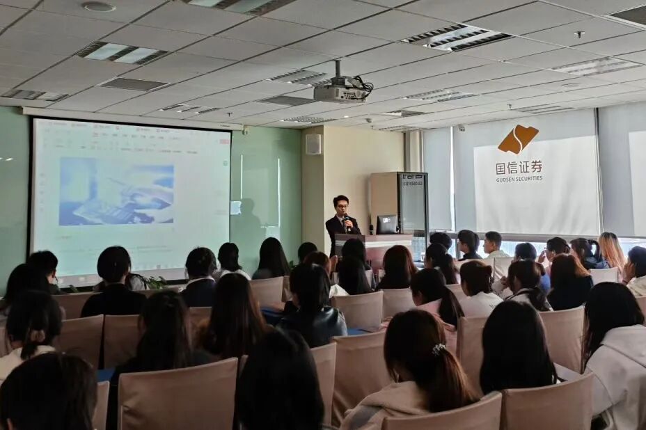 国信证券的投资理财经理程远乐先生热情接待了参访师生。在公司的会议室,程经理首先向大家分享了公司的发展历程和市场地位以及社会责任。国信证券股份有限公司(简称“国信证券”)前身是1994年6月30日成立的深圳国投证券有限公司,经过30多年的发展,国信证券已成长为全国性大型综合类证券公司。