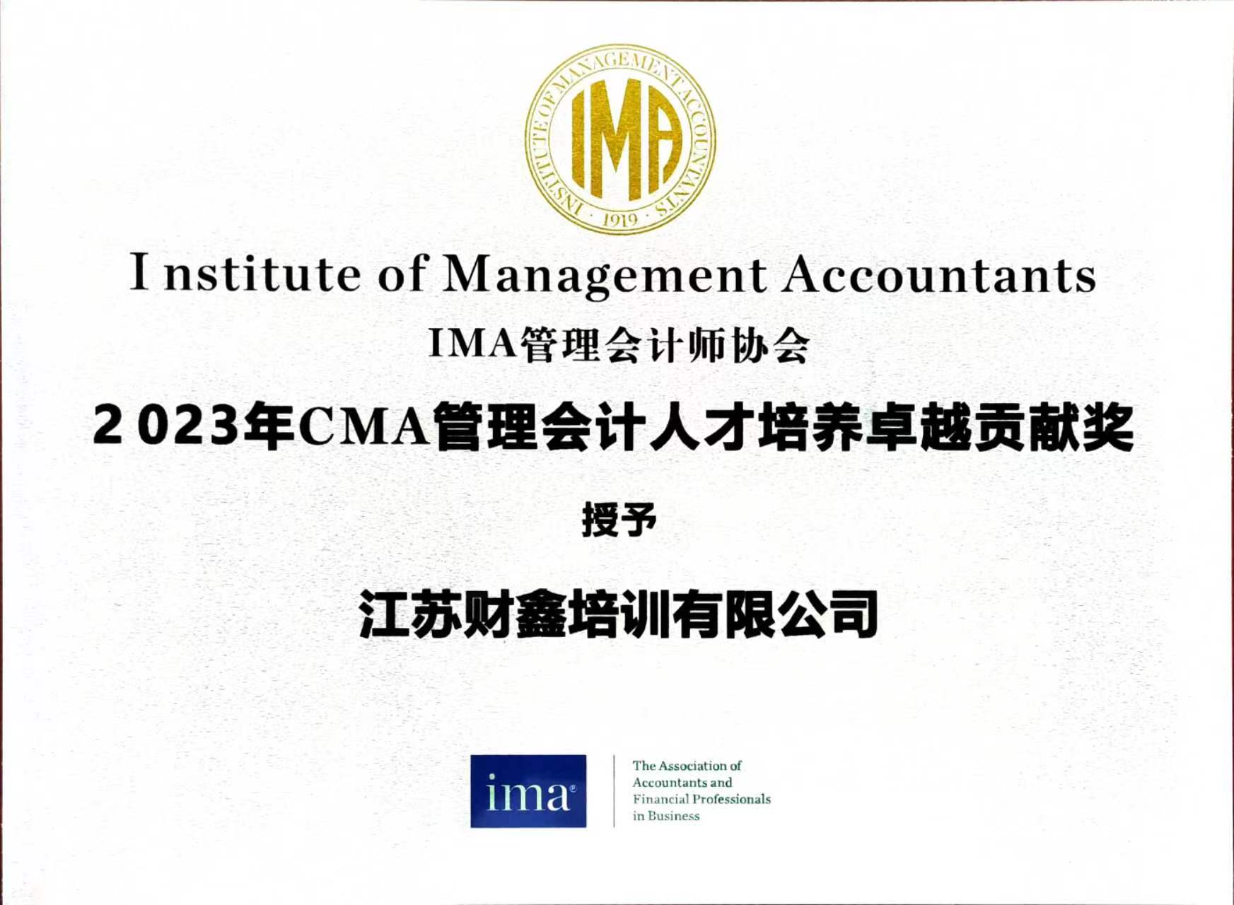 2023年12月15日,由IMA管理会计师协会主办的“2023年CMA授权培训机构年会”在四川成都举办。财鑫教育在此次CMA授权培训机构年会上荣获“2023年CMA管理会计人才培养卓越贡献奖”。财鑫教育董事长张福德先生、西南区域总监张小飞先生出席了本次年会。