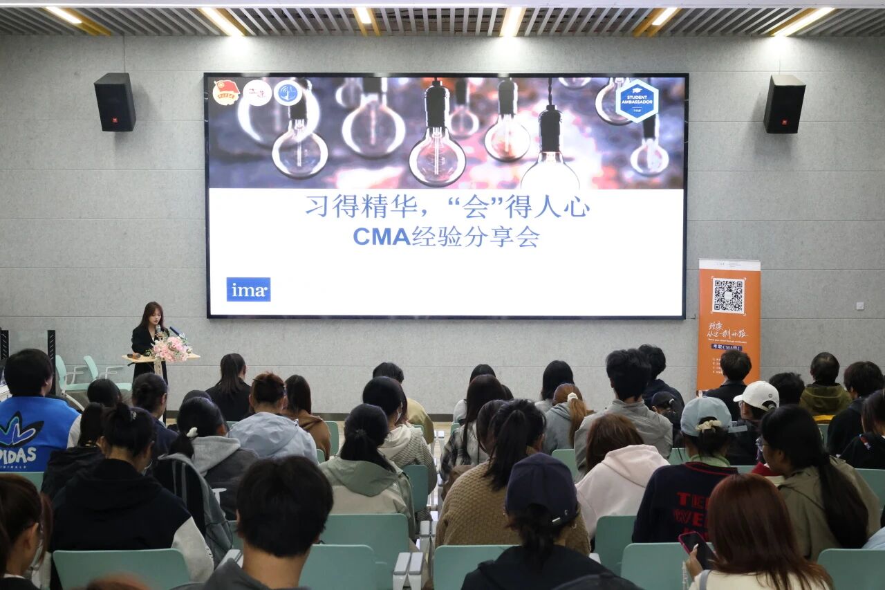 在考试经验分享环节,已通过CMA考试的优秀学生代表唐绍荣、唐瑞霖及刘晞同学,他们分别结合自身学习经历,从基础认知、备考方式等方面出发,交流了备考策略与学习心得。