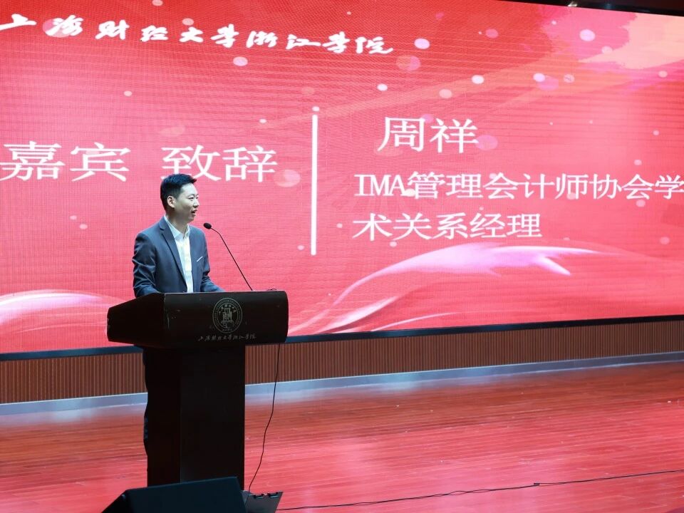 在开班典礼上,曾院长现场为CMA精英班专属班主任钱辰瑛老师授予聘书。最后,IMA管理会计师协会周祥经理作CMA发展及管理会计案例大赛报告。